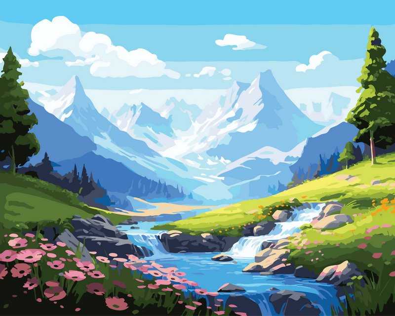 PBN “Alpine Valley with Waterfall”
