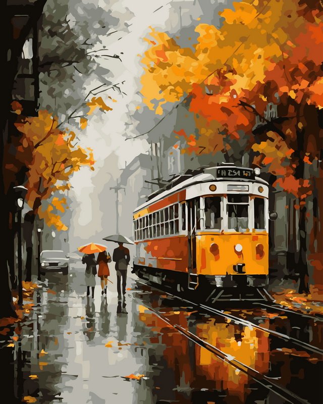PBN “Autumn Tram in Rainy City Street”
