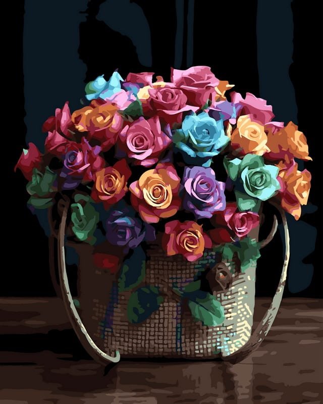 PBN “Colorful Rose Basket Still Life”