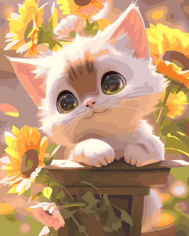 PBN “Cute Kitten with Sunflowers”