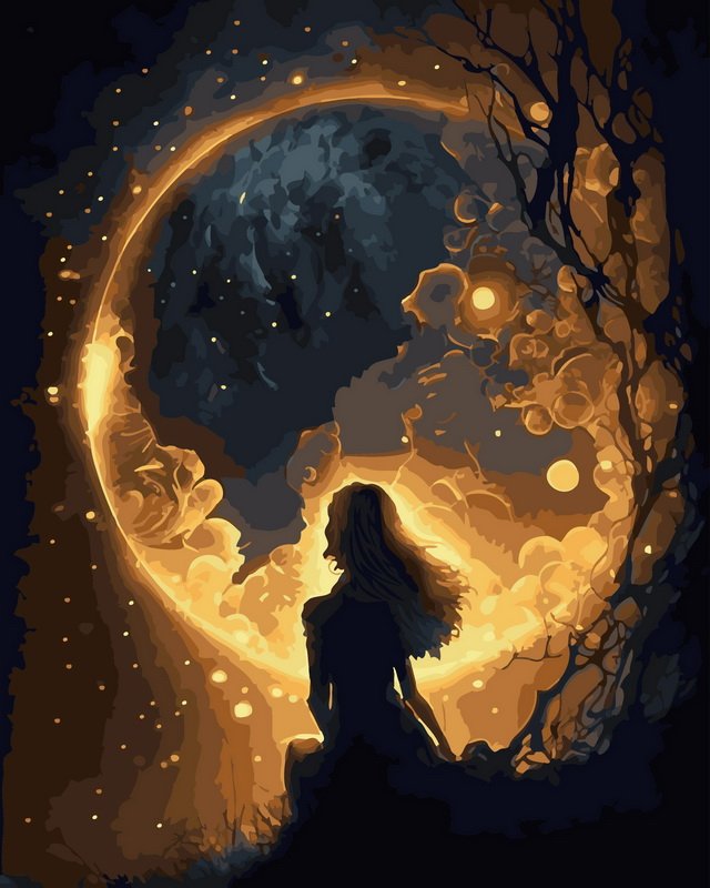 PBN “Girl Silhouette Under Golden Moon”